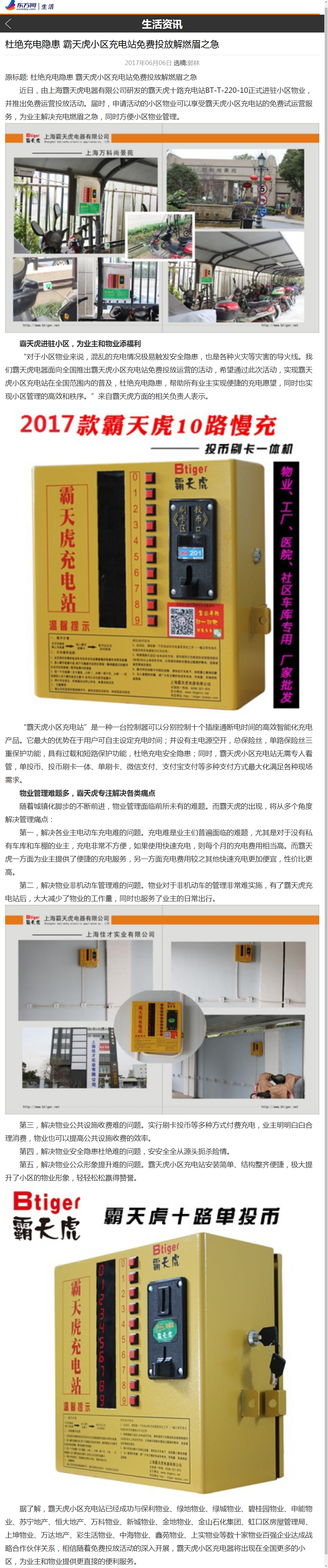 近日,由上海霸天虎電器有限公司研發的霸天虎十路充電站BT-T-220-10正式進駐小區物業,并推出免費運營投放活動。屆時,申請活動的小區物業可以享受霸天虎小區充電站的免費試運營服務,為業主解決充電燃眉之急,同時方便小區物業管理。