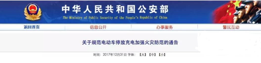在去年的年底,國(guó)家公安部就針對(duì)電動(dòng)車起火這類事故發(fā)布了通告,通告中明確提出: