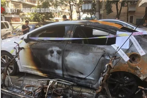 8月20日凌晨1點10分左右,南京白云亭小區一棟居民樓下開始冒煙,很快發生猛烈燃燒,火勢越來越大,消防戰士趕到后將大火撲滅。火災原因是車主從5樓拉8米的線給一樓的電動車充電,在充電過程中電氣故障引燃了周邊的可燃物,過火面積大概6平方米,所幸并無人員傷亡。主要燒毀了2輛電動車和3輛汽車。3輛汽車不同程度受損,其中靠近電動車的這輛汽車受損程度比較嚴重,基本報廢。