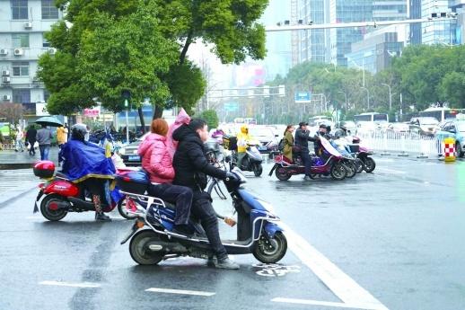 1月3日,長沙市芙蓉中路與湘春路交會處,違反規定載人的電瓶車。顧榮攝
