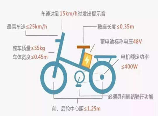 新標準要求,今后電動自行車須具有腳踏騎行能力、最高設計車速不超過每小時25公里、整車質量(含電池)不超過55公斤、電機功率不超過400瓦、蓄電池標稱電壓不超過48伏。